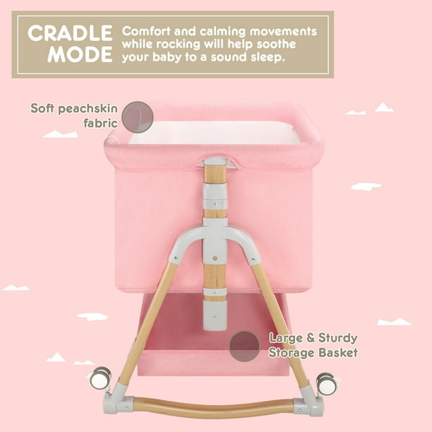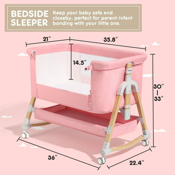 HARPPA 3 in 1 Baby Bassinet Bedside Sleeper for Infant Girls Aged 0-5 Months, Pink