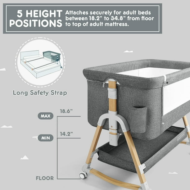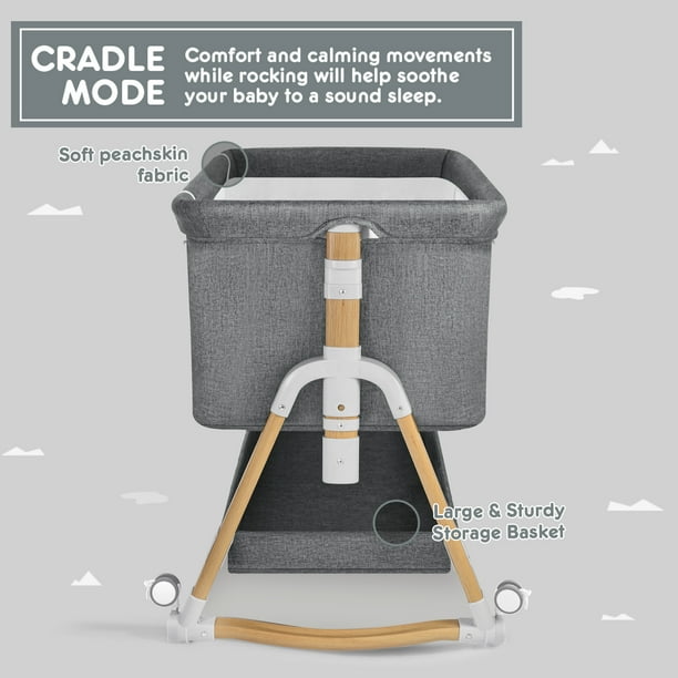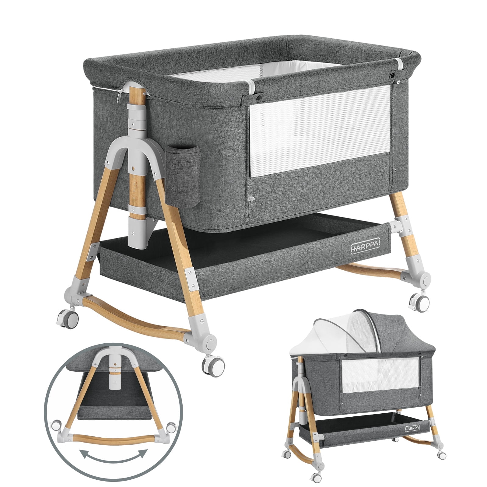 HARPPA 3 in 1 Baby Bassinet Bedside Sleeper, Height Adjustable, Easy Folding, Gray