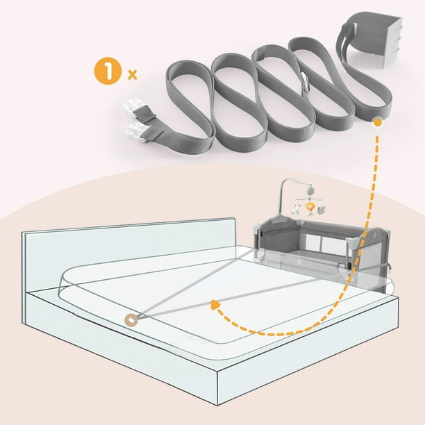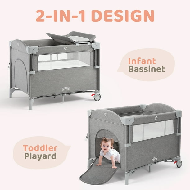 HARPPA 5 in 1 Portable Playard and Bassinet Bedside Sleeper for Newborn to Toddler, Unisex, Gray