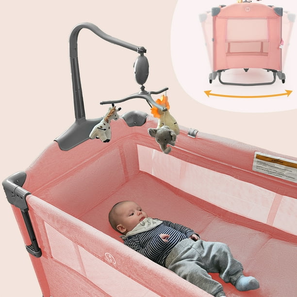 HARPPA 5 in 1 Portable Playard and Bassinet for Girl from Newborn to Toddler, Easy Folding, Pink