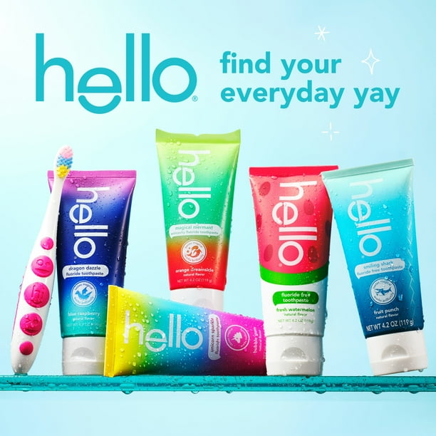 Say goodbye to brush time fighting and hello to more everyday yay with hello Fresh Watermelon Fluoride Free Kids Toothpaste. This one in a melon kids fluoride free toothpaste helps remove plaque with regular brushing and tastes brilliant with its natural watermelon flavor. Plus, this kids watermelon toothpaste is safe for all ages and the great tasting watermelon flavor is a fun way to encourage regular brushing habits at an early age. hello Fresh Watermelon Kids Fluoride Free Toothpaste helps gently polish and brighten little teeth when kids brush. Our toothpaste is formulated without spicy mint so kids can say goodbye to spicy and hello to a kids toothpaste that’ll make them smile wide. Seriously, your kiddos are gonna love this watermelon toothpaste. We’re serious about being friendly, and about what goes into little mouths. That means making a kids toothpaste that contains no artificial sweeteners, artificial flavors, SLS, parabens, dyes, spicy mint, and that is gluten free. Plus, this children’s toothpaste is not tested on animals. Choose friendly and brush happy with hello Fresh Watermelon Fluoride Free Kids Toothpaste.