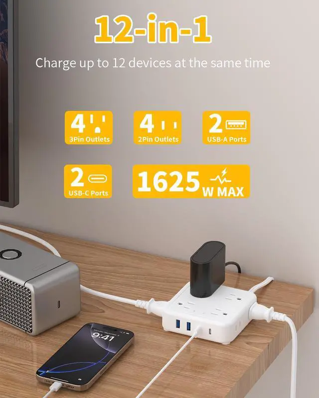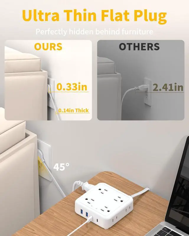 Buy HOPOW Flat Plug Power Strip with 15W USB C Port, 5 Ft Ultra Thin Extension Cord with 8 Outlets & 4 USBs, 1440 Joules Surge Protector, Power Delivery High-Speed Charging Station for iPhone13/12, White with fast shipping and top-rated customer service. Once you know, you Newegg!