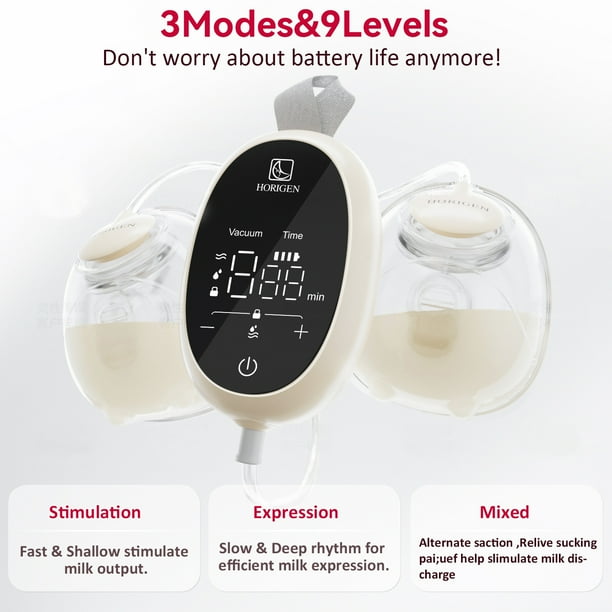 Horigen D6 Milk White Electric Hands Free Breast Pump Wearable Lower Noise Breastfeeding Strong Suction 180ml/6oz