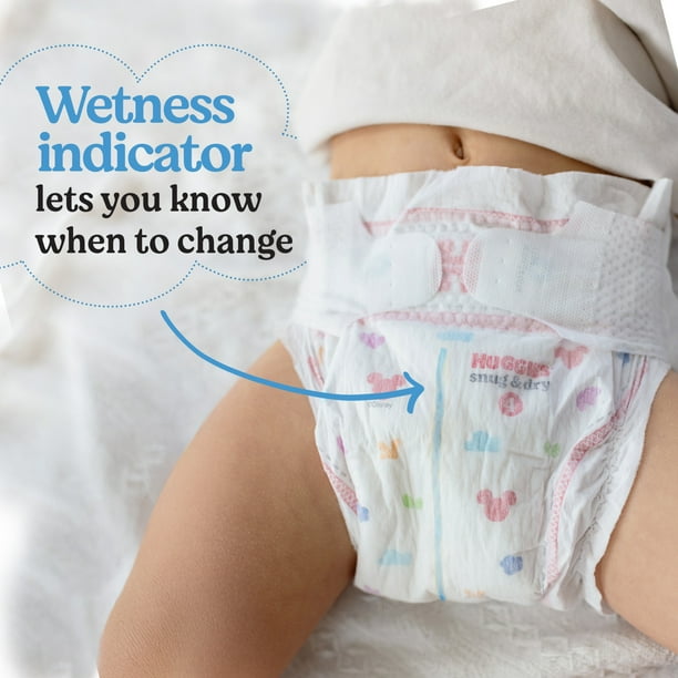 Our Snug & Dry diapers are designed with 2x softness: CloudSoft absorbent layers and waistband and a curved and stretchy fit. Softer than the leading premium diaper, more parents choose Huggies Snug & Dry infant diapers as softer.* With Snug & Dry baby diapers, you can bring up to 100% leak and blowout protection to your diapering routine. Made with the original Leak Lock blowout blocker, Snug & Dry baby diapers help provide up to 100% leak proof and blowout protection. Additionally, these diapers are designed with a curved and stretchy fit and outstanding leakage protection. As the only leading brand that is entirely fragrance free,* Snug & Dry newborn diapers are free of fragrances and elemental chlorine. They are also made without lotions and natural rubber latex. To better alert you when a diaper change is needed, the wetness indicator on Snug & Dry infant diapers changes color when wet. Available in exclusive Disney designs, Huggies Snug & Dry Diapers are available in size Newborn (6-9 lb.), size 1 (8-14 lb.), size 2 (12-18 lb.), size 3 (16-28 lb.), size 4 (22-37 lb.), size 5 (27+ lb.), size 6 (35+ lb.), size 7 (41+ lb.) and size 8 (46+ lb.). (*vs leading premium diaper) (**among leading national diaper brands, across all offered variants) (***among branded open diapers. Excludes preemie size.)