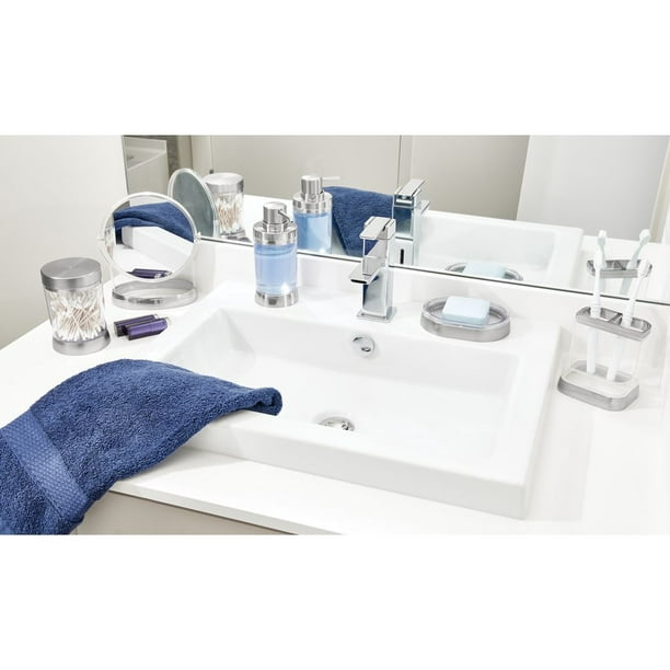 Add elegant charm to your bathroom with the iDesign Haley Soap Dish. This dish holds a bar of soap on a ridged base to keep your countertops and soap clean. Constructed of plastic, the soap dish is easy to clean and will last for years of quality use. The plastic brushed base adds a rust-proof luxurious touch to compliment any decor. The iDesign Haley Soap Dish measures 5.47″ x 4.17″ x 1.03″.iDesign Haley Bar Soap Dish, Brushed: