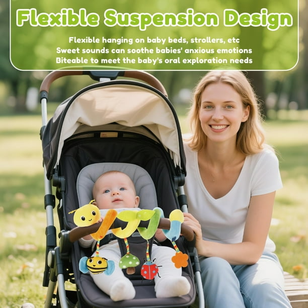 Spiral Car Seat Toy Soft Spiral Stroller Toy with 4 Pendants Hanging Stroller Accessory for Baby