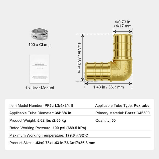 - Ensured Safety: This set of pipe fittings includes 50 clamp elbows and 100 clamps, all meeting the necessary standards for both commercial and residential plumbing applications. Each fitting is capable of withstanding pressures up to 100 PSI and temperatures up to 82°C/179.6°F.