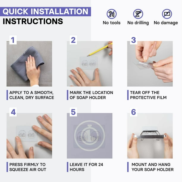 Don’t worry, installation of our bar soap holder and sponge caddy is as hassle-free as it gets. Firmly fasten the draining soap dish to tiles, mirrors, glass and high gloss finishes without drilling any holes into your walls. The strong sticker of our soap tray grips tightly to the smooth surface much better than traditional suction cups. Easily installed and cleaned!