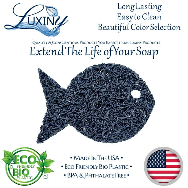 Luxiny American Made Soap Saver for Soap Dishes & Shower Soap Holders – Helps Handmade Soap Last Longer – Made from Plant Based Environmentally Friendly Bioplastics Navy Blue Fish