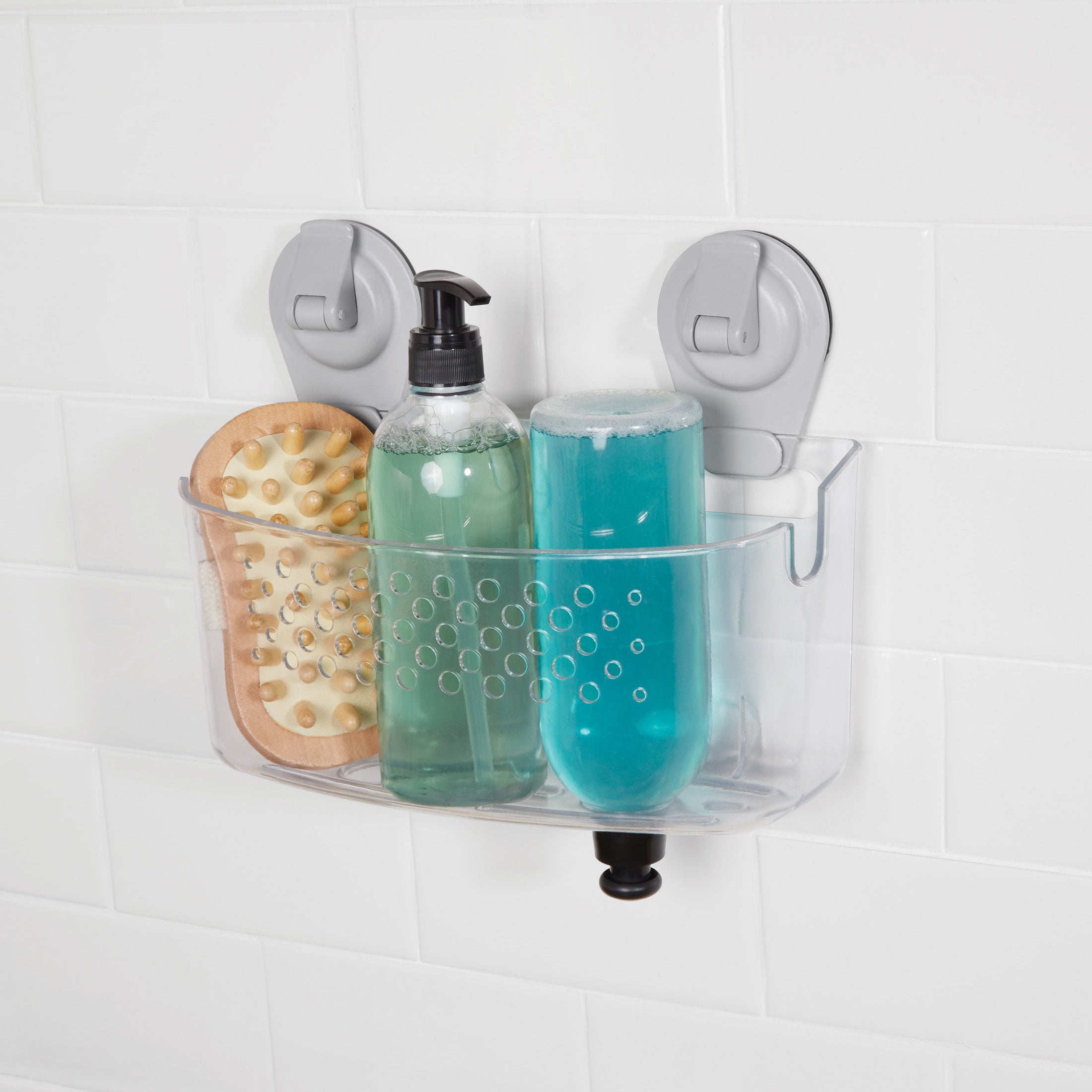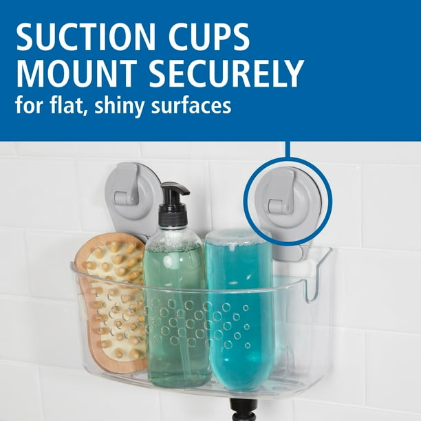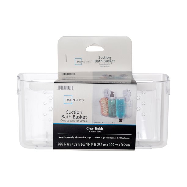 Thanks to its strong and secure suction-cup installation, the Mainstays Suction Bath Basket makes it easy to add wall-mounted storage into your tub or shower. The suction basket easily installs with no tools on smooth, flat, glazed or shiny wall surfaces, including glass, mirrors or polished metals. The basket is generously sized for assorted bottles and bath accessories. Quick-dispense inverted bottle storage is built in for using shampoo and other liquids without removing them. Razor storage is also built into the sturdy plastic basket.