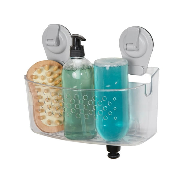 Mainstays Clear Wall-Mounted Suction Bath Basket, Easy to Install, No Tools Needed