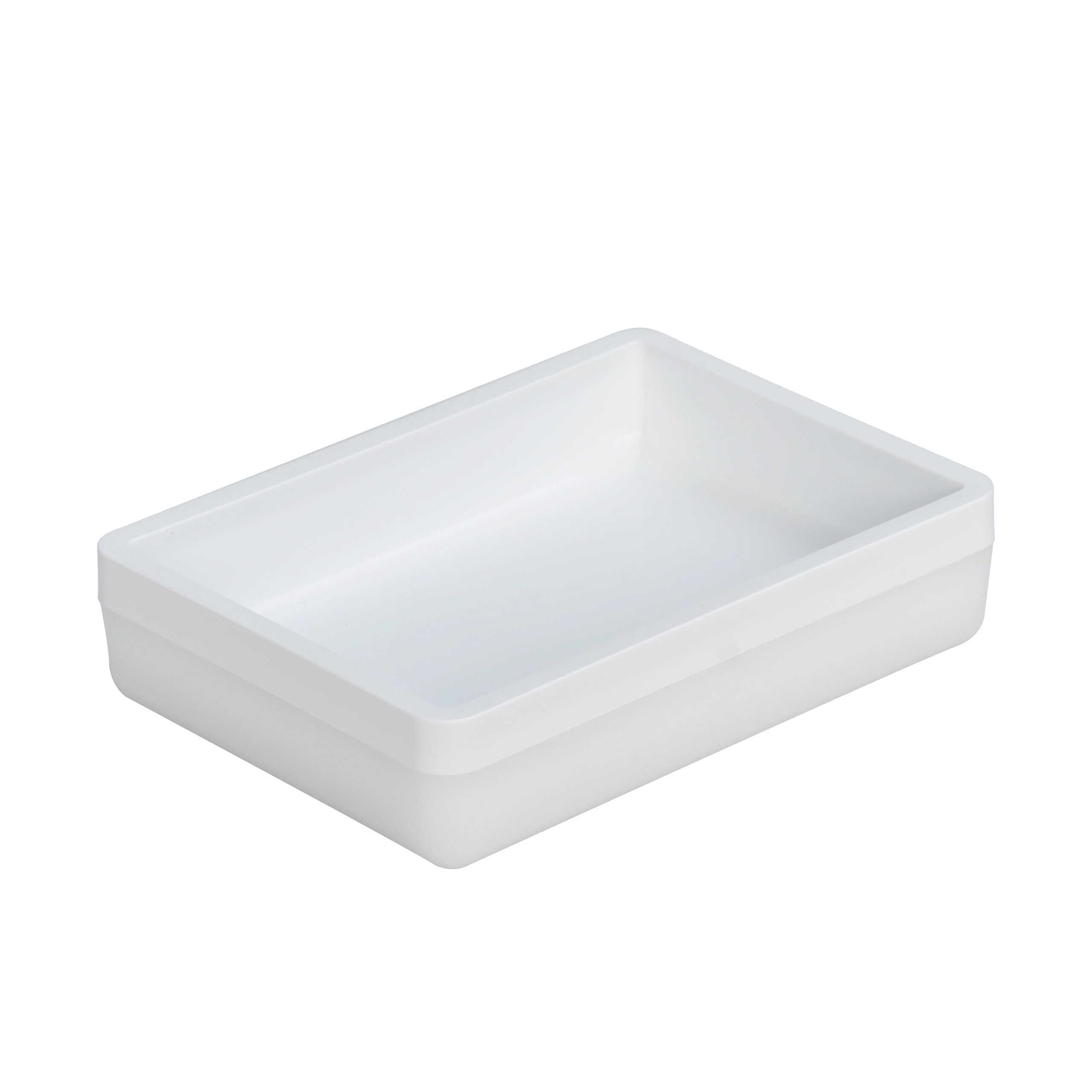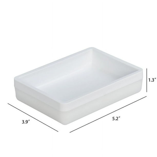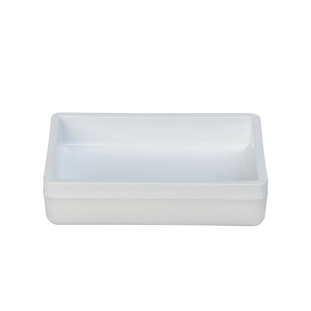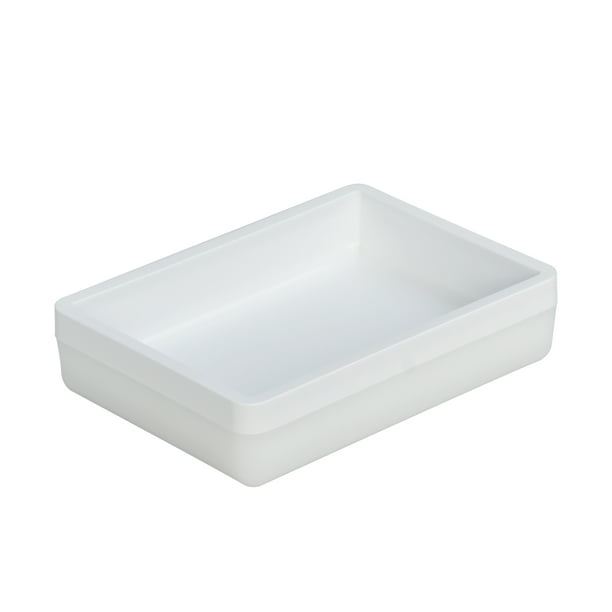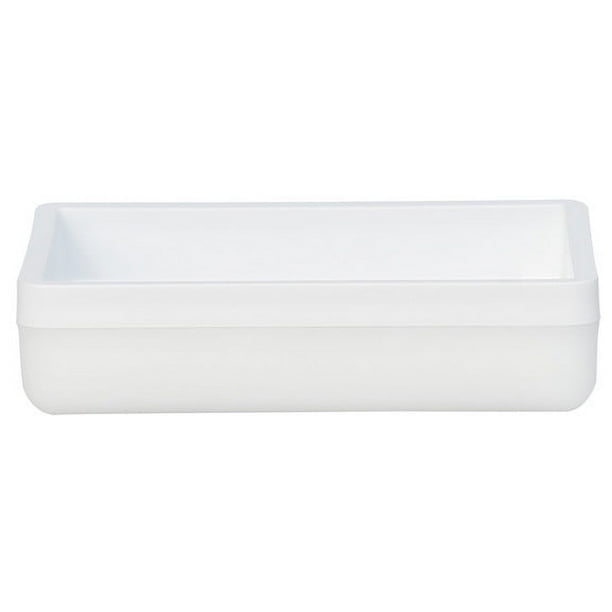 The Mainstays Frosted White Soap Dish is a simple and compact soap holder that will add a touch of sophistication to any bathroom or kitchen space, thanks to its frosted and glossy contrast finish and soft corners. Its high wall will keep your soap bar in place or it can be used to organize your counter too. Crafted from durable plastic with a clean frosted look, the finish is both classic and pleasing to the eye. This frosted white soap dish is compact in design, measuring 5.25 in. L x 3.8 in. W x 1.2 in. H. Match this soap dish with other products from the Mainstays Frosted White collection for a cohesive look.