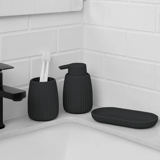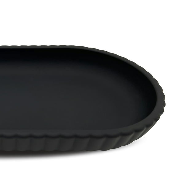 • The Mainstays Rubberized Plastic Ribbed Accessory Tray features a unique ribbed design that adds a touch of sophistication and modern flair to your bathroom decor.