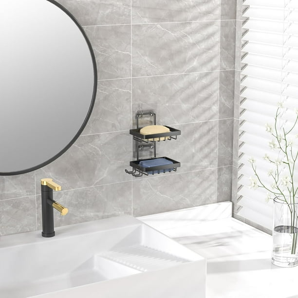 • Soap Dish Soap Bar Holder For Shower, No Drilling, 304 Rustproof Stainless Steel, Wall Mounted Soap Holder With 4 Hooks And Razor Holder, Shower Rack Soap Tray Bar Soap For Bathroom and Kitchen