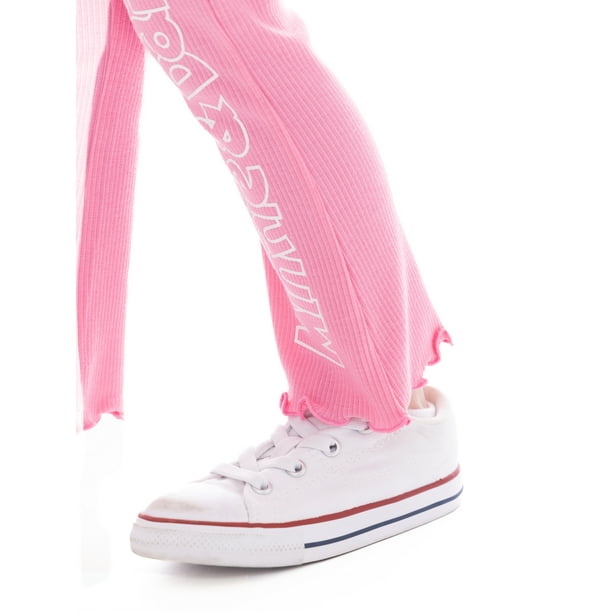 - Leggings Features: Pull-on style; easy fit; elastic waistband; flared leg; lettuce edge hem; ribbed texture; graphic at left leg
