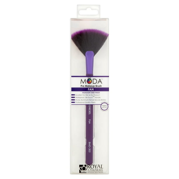 Achieve a natural, radiant glow by applying highlighter to your cheekbones with this classic Moda Fan Makeup Brush. Its delicate, vegan and cruelty-free filaments offer precise application, creating a subtle, luminous finish. This versatile brush is also perfect for dusting away any eyeshadow fallout, ensuring a clean, flawless look. Ideal for adding a touch of glow or finishing your makeup.
