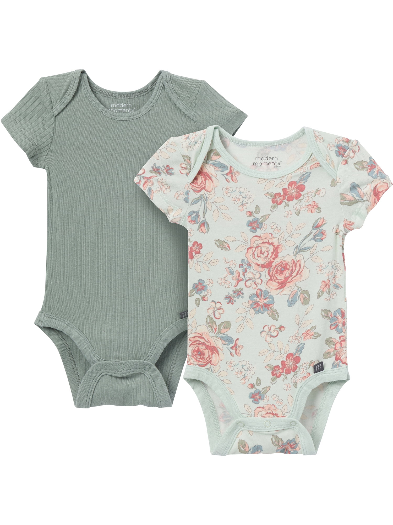 Modern Moments by Gerber Baby Boys or Girls Super Soft Short Sleeve Bodysuits, 2-Pack, Sizes 0M-12M
