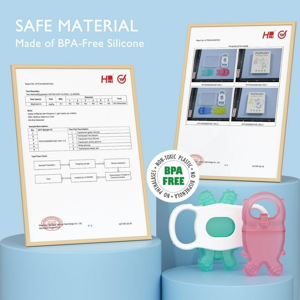 - Safe Material – BPA-Free silicone teether and handle, any part of the entire teether is safe to chew, hollow texture no liquid gel inside, no afraid of broken and chemical substances leaking.