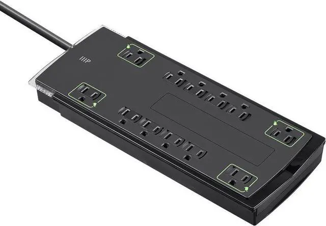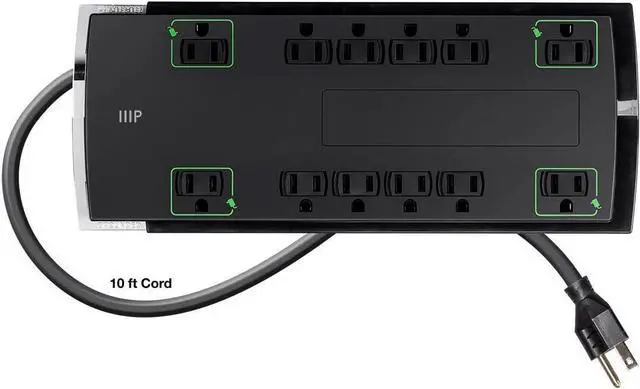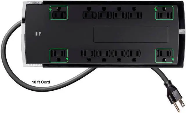 Monoprice 12 Outlet Slim Surge Protector Power Strip – 10 Feet – Black | Heavy Duty Cord | UL Rated, 4,230 Joules With Grounded And Protected Light – Pappy Mall