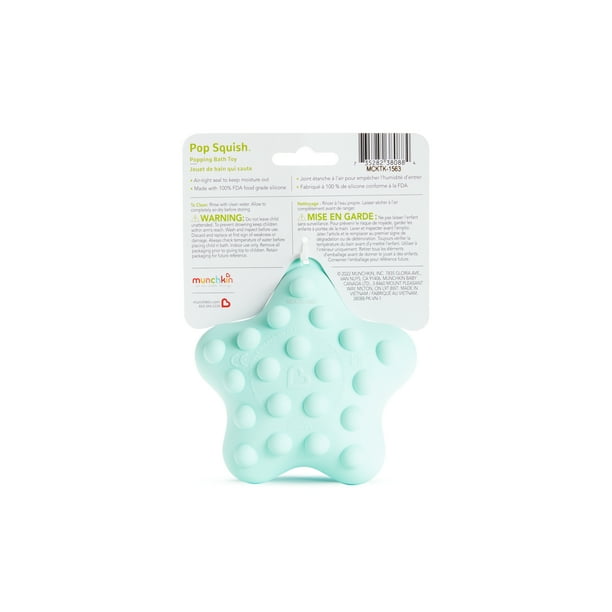 Invite imagination and delight to baby’s bath routine with the Munchkin Pop Squish™ popping bath toy! This sweet starfish engages little ones’ tactile, visual, and auditory senses all at once through fun colors and satisfying pops. Sensory stimulation aside, fidget toys can help develop focus, hand-eye coordination, and fine motor skills too. With a special watertight design that keeps mold and mildew away, this squeezable star is the perfect tub time friend. Wish upon a starfish and get ready for some squishy, splashy fun!