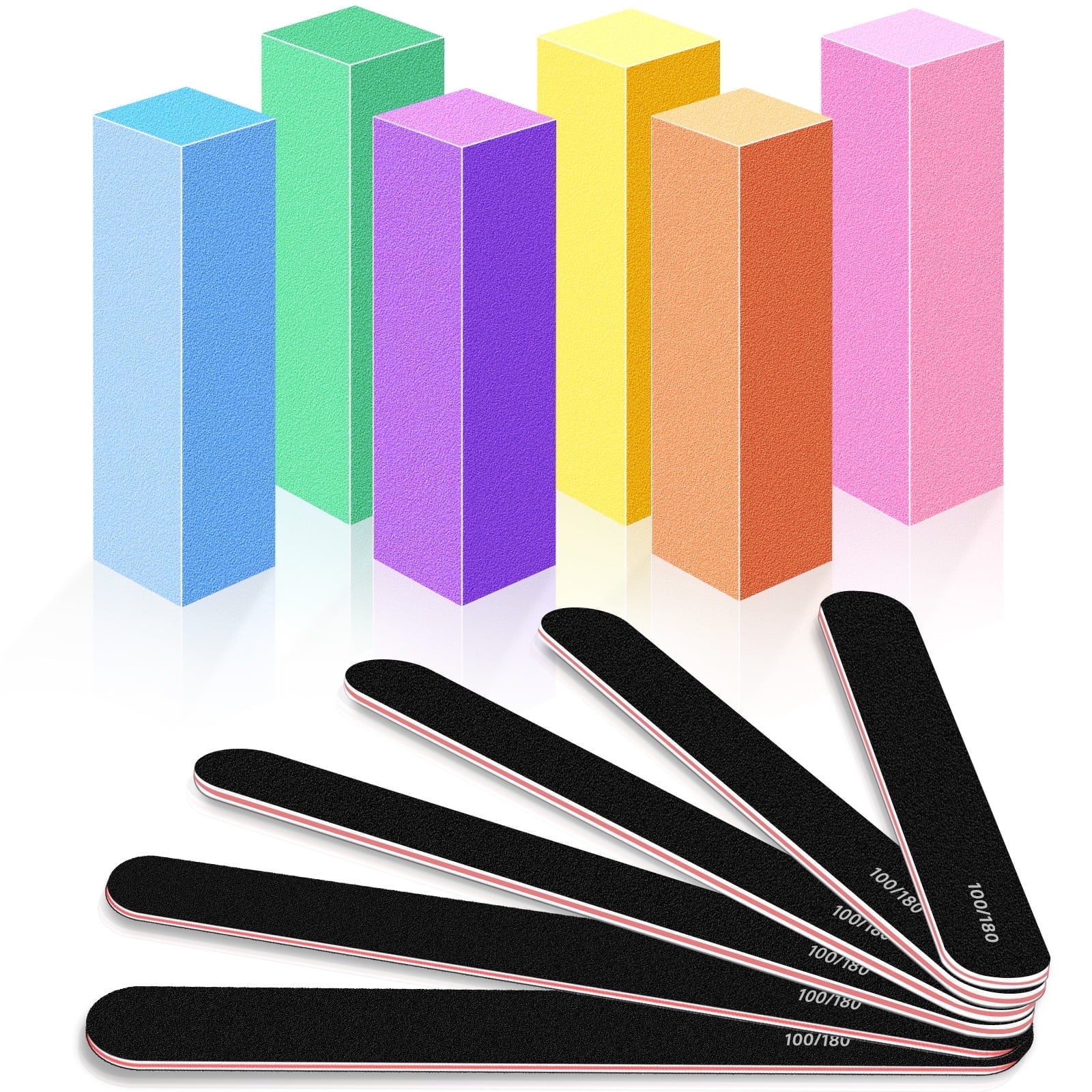 Nail Files and Buffer 12 Pcs, Professional Manicure Tools Kit Care Buffer Block Tools 100/180 Grit, Colorful