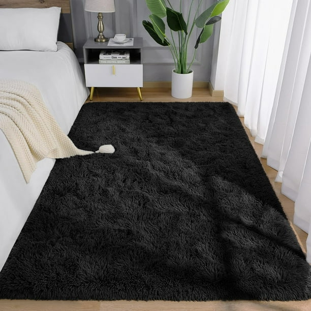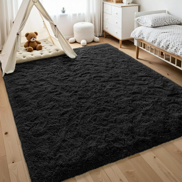 Nefoso Shag Area Rug, 5ft x 8ft Soft Fluffy Area Rugs for Living Room Bedroom Decor Carpet, Black