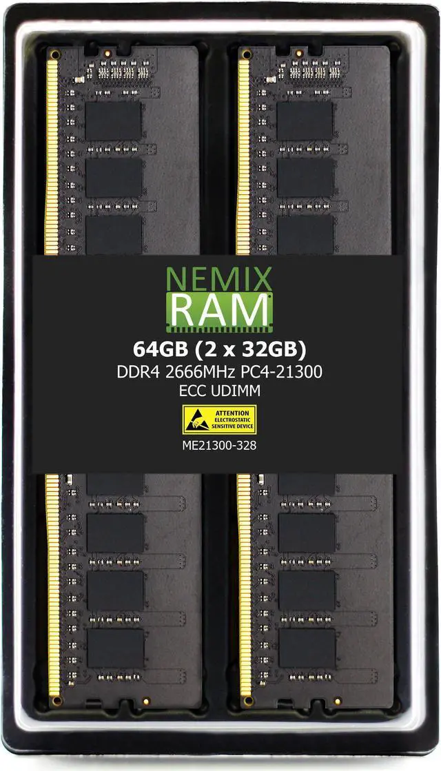 NEMIX RAM 64GB (2X32GB) DDR4 2666MHZ PC4-21300 2Rx8 1.2V 288-PIN ECC Unbuffered UDIMM Memory KIT – Pappy Mall