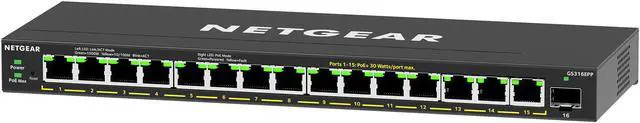 NETGEAR 16-Port High-Power PoE+ Gigabit Ethernet Plus Switch (231W) with 1 SFP Port | GS316EPP – Pappy Mall