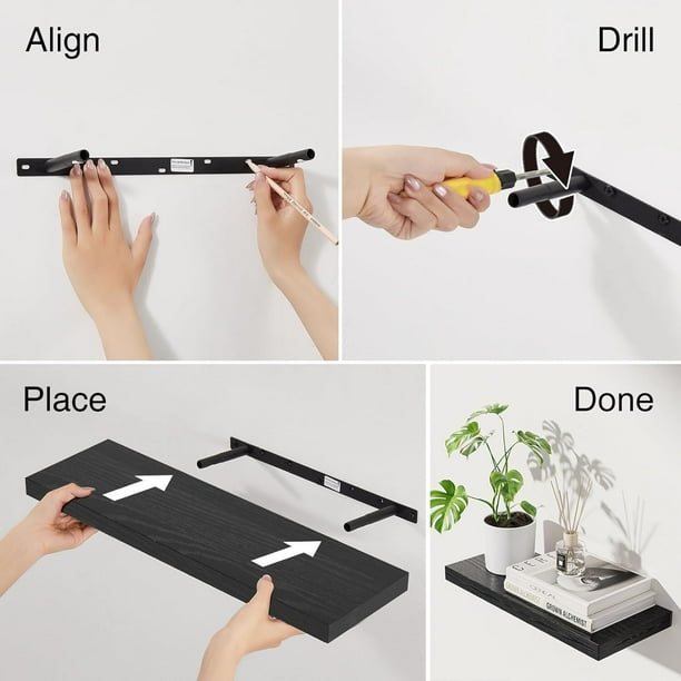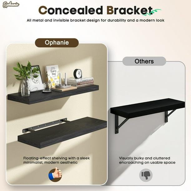Ophanie 22.5 inch 2 Pack Wood Floating Shelves, Hanging Float Shelf for Wall Mounted Decorative Shelves, 6.7 x 23 Inch, Set of 2, Black