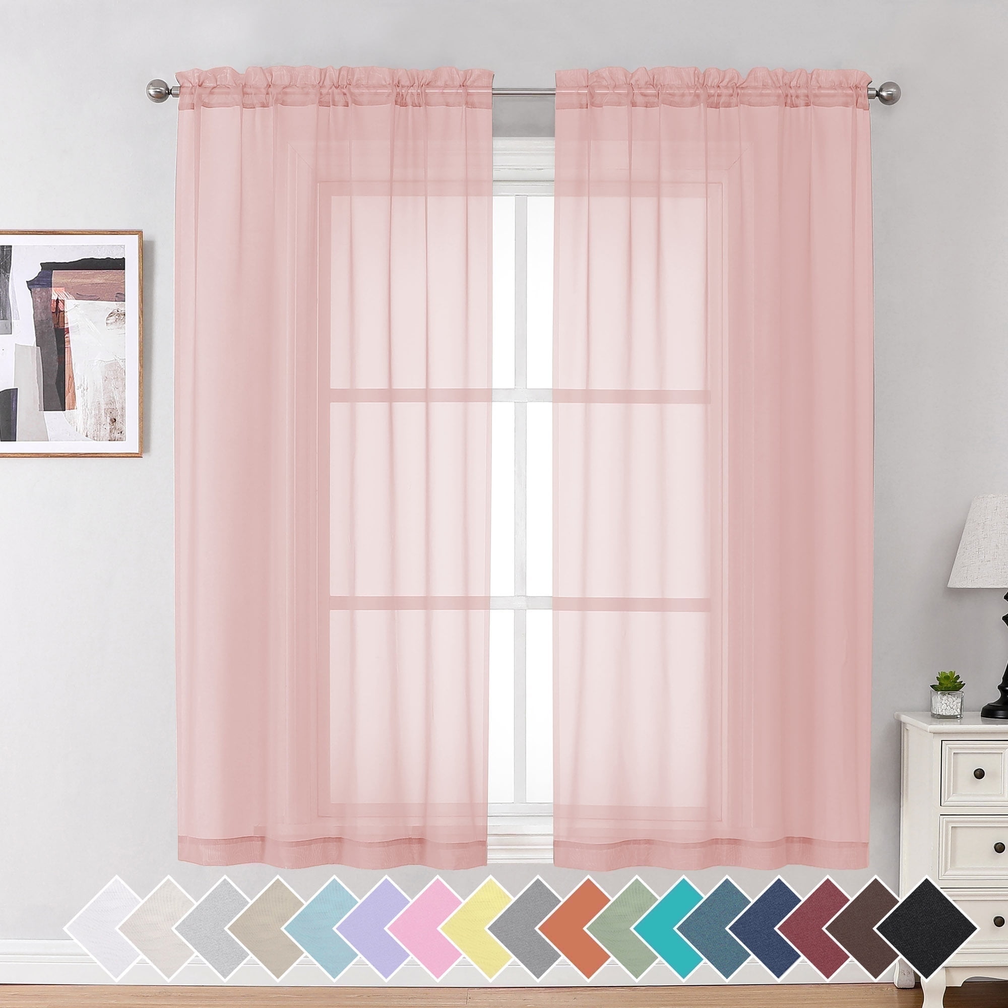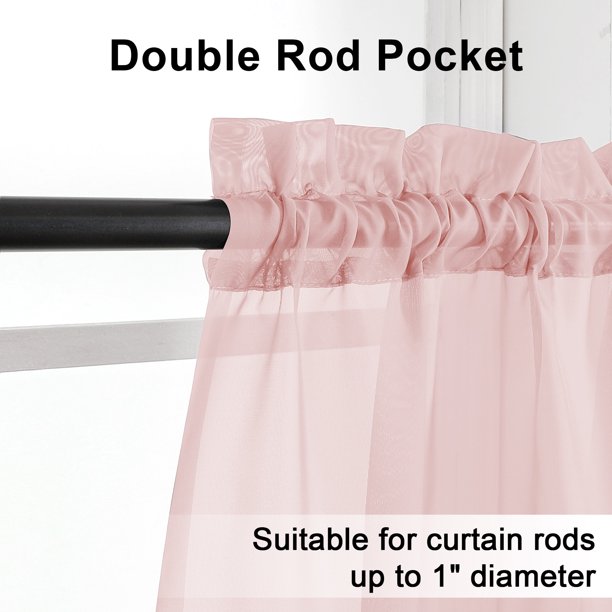 - Size & Quantity: Each pack contains 2 sheer panels, each 42″ wide and 63″ long, with a total width of 84″. Header 1.5″, Rod Pocket 2″ (suitable for most of curtain rods), Bottome hem 2″, Clean Selvedge side.