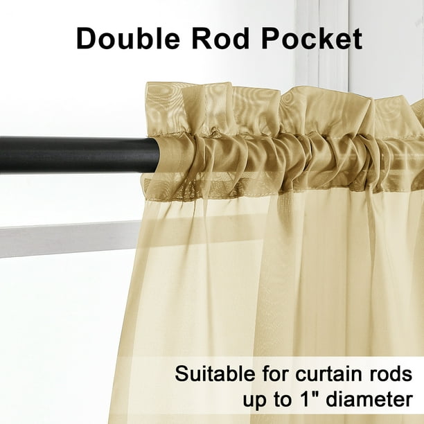 • Size & Fit: Each package includes 2 pieces sheer curtains. Single panel: 42″W x 24″L (84″ total w/ 1.5″ header). Top & bottom rod pockets fit 1.5″-2″ rods (tension or standard).