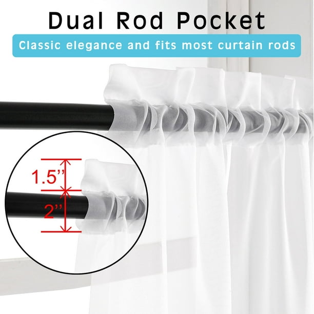 • 2 Panels a Set: Each pack contains 2 sheer curtains, each 42″ wide and 84″ long, total width is 84″. The top double rod pockets are between 1.5″-2″ in size, suitable for curtain rods in most homes, which make curtains easier to hang or slide, feels great to use.