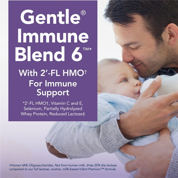 • Gentle Immune Blend 6: With 2’-FL HMO, Vitamin C and E, Selenium, Partially Hydrolyzed Whey Protein, Reduced Lactose (has 20 percent the lactose compared to our full lactose, routine, milk-based Infant Premium formula)