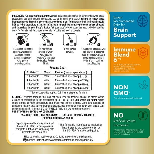 - Complete Nutrition: This infant formula provides complete nutrition for baby’s first year; with expert recommended DHA for brain support and immune supporting HMOs commonly found in breast milk; compare to the nutrition of Enfamil NeuroPro