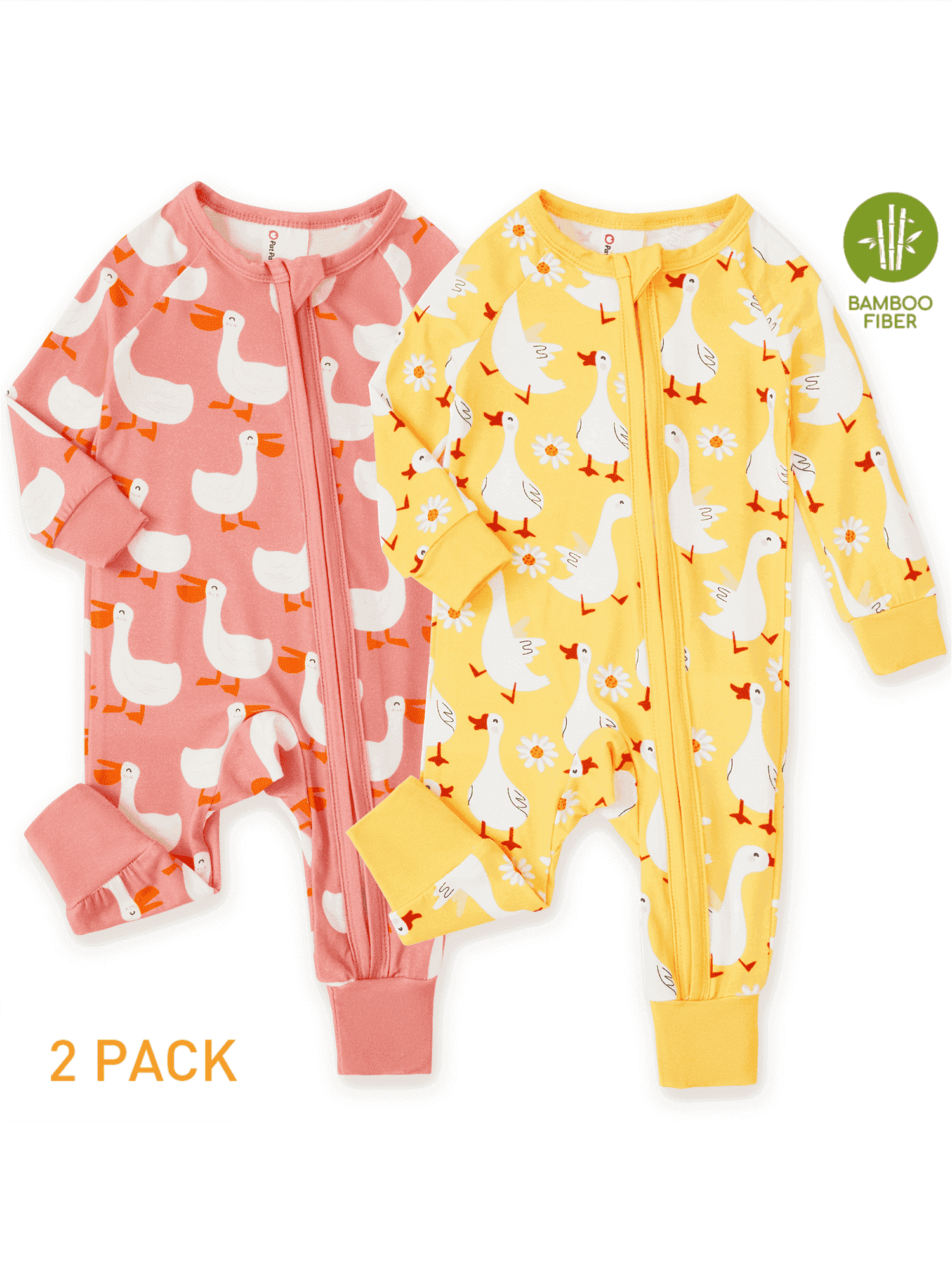 PatPat Bamboo Baby Pajamas Baby Girl Gifts Snug Fit Zipper Long-Sleeved Baby Bodysuits Sleepwear,2Pack,0-24 Months