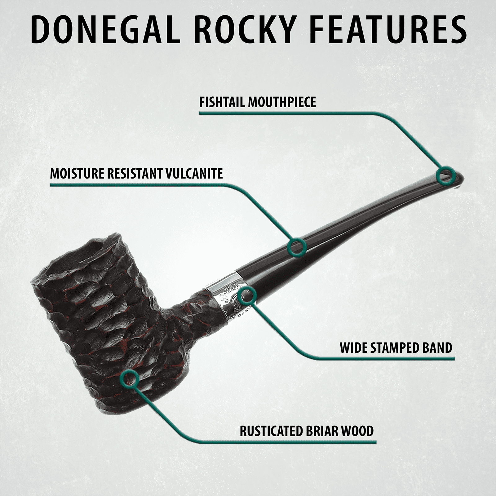 Peterson Donegal Rocky – Handmade Irish Pipe, Hand Crafted Wood Pipe, Polished Rustic Briar With Textured Finish, Collectible Briar Pipe Made in Ireland, Rusticated (701)