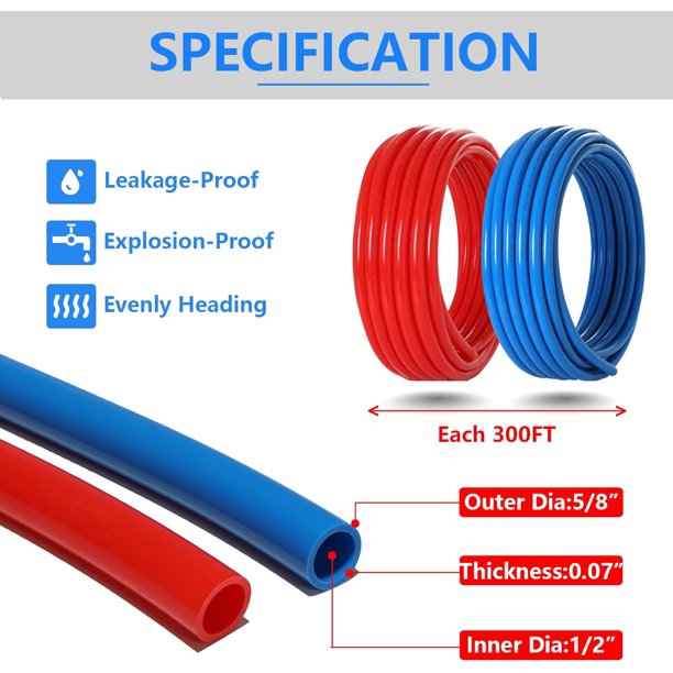 • Package Inckude:There are Pex-B Pipe/Tubing 1/2″ 300 ft Blue Pex + 300 ft Red Pex 600 ft Total with a Pipe Cutter in the package.Suitable for hot & cold water plumbing jobs system.