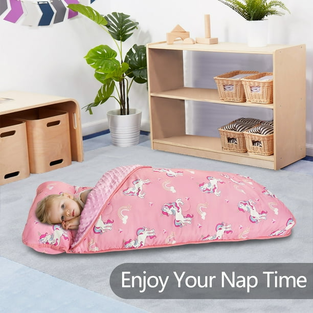 • All-in-one Design: This sleeping bag comes with a sturdy handle and a name tag sewn in place, making it perfect for organized use in preschool or daycare settings.
