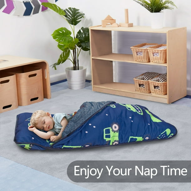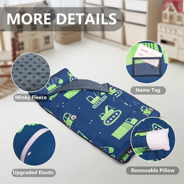 • All-in-one Design: This sleeping bag comes with a sturdy handle and a name tag sewn in place, making it perfect for organized use in preschool or daycare settings.