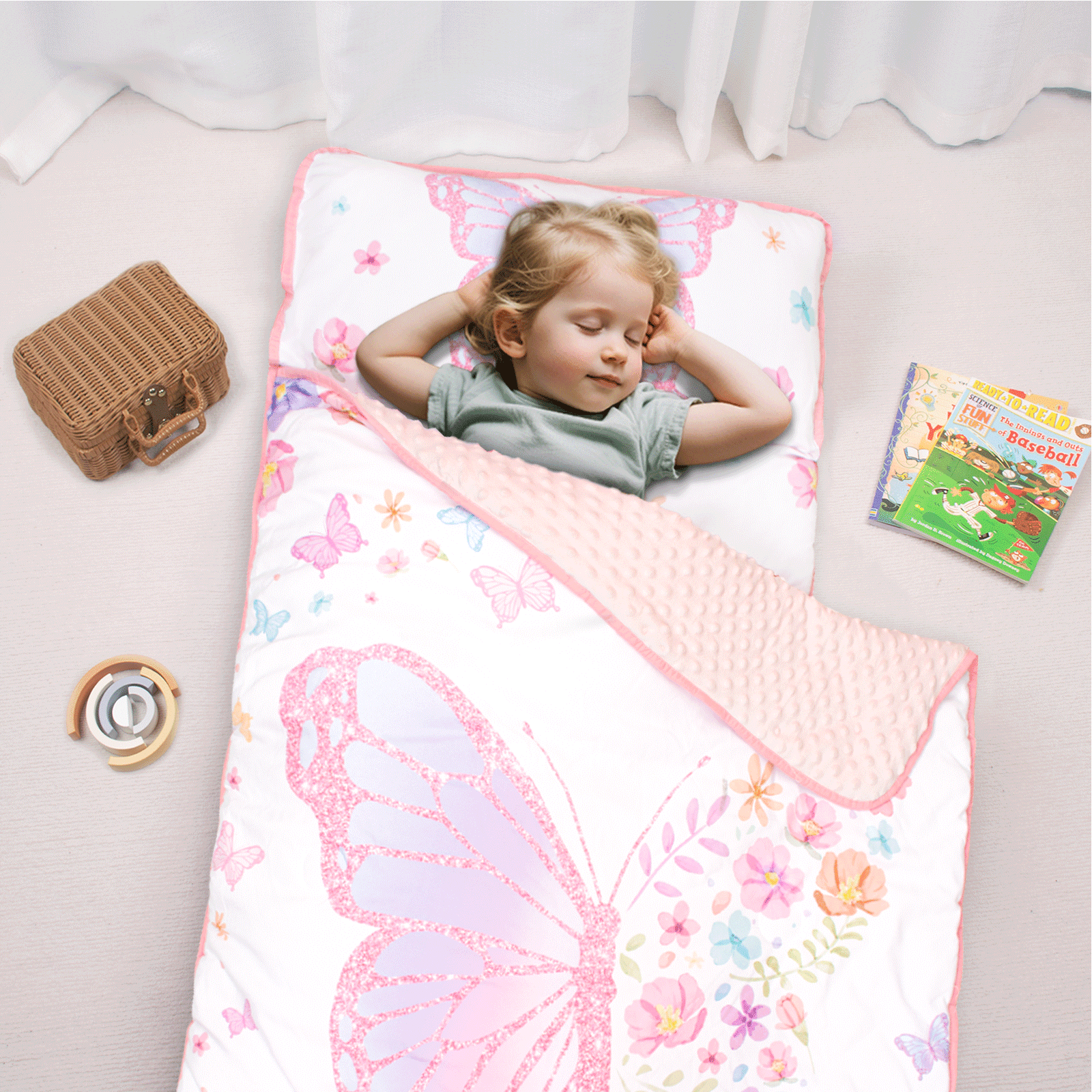 • Spacious for Growing Kids: Sized at 55″ x 22″ with a cozy 43″ x 35″ blanket, this generously sized nap mat gives active sleepers room to stretch out comfortably during nap time at kindergarten, daycare, or home.