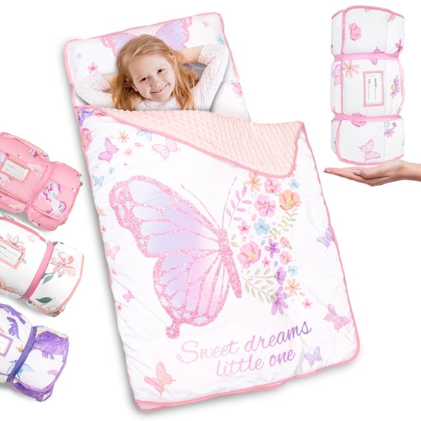 Give your child the gift of cozy naps with the Primlect Nap Mat! Measuring 55″ x 22″ x 2″, it’s one of the thickest mats around, perfect for keeping your preschooler comfy, even on hard floors. Made with soft minky fabric, this toddler sleeping bag is warm, plush, and super snuggly. The detachable pillow makes cleaning a breeze—just toss them in the wash! Lightweight at 3.4 pounds, it folds easily into a portable sleeping bag with handy straps for carrying. Plus, the name tag helps prevent mix-ups. Ideal for kindergarten daycare, preschool, or travel, it’s nap time made perfect!