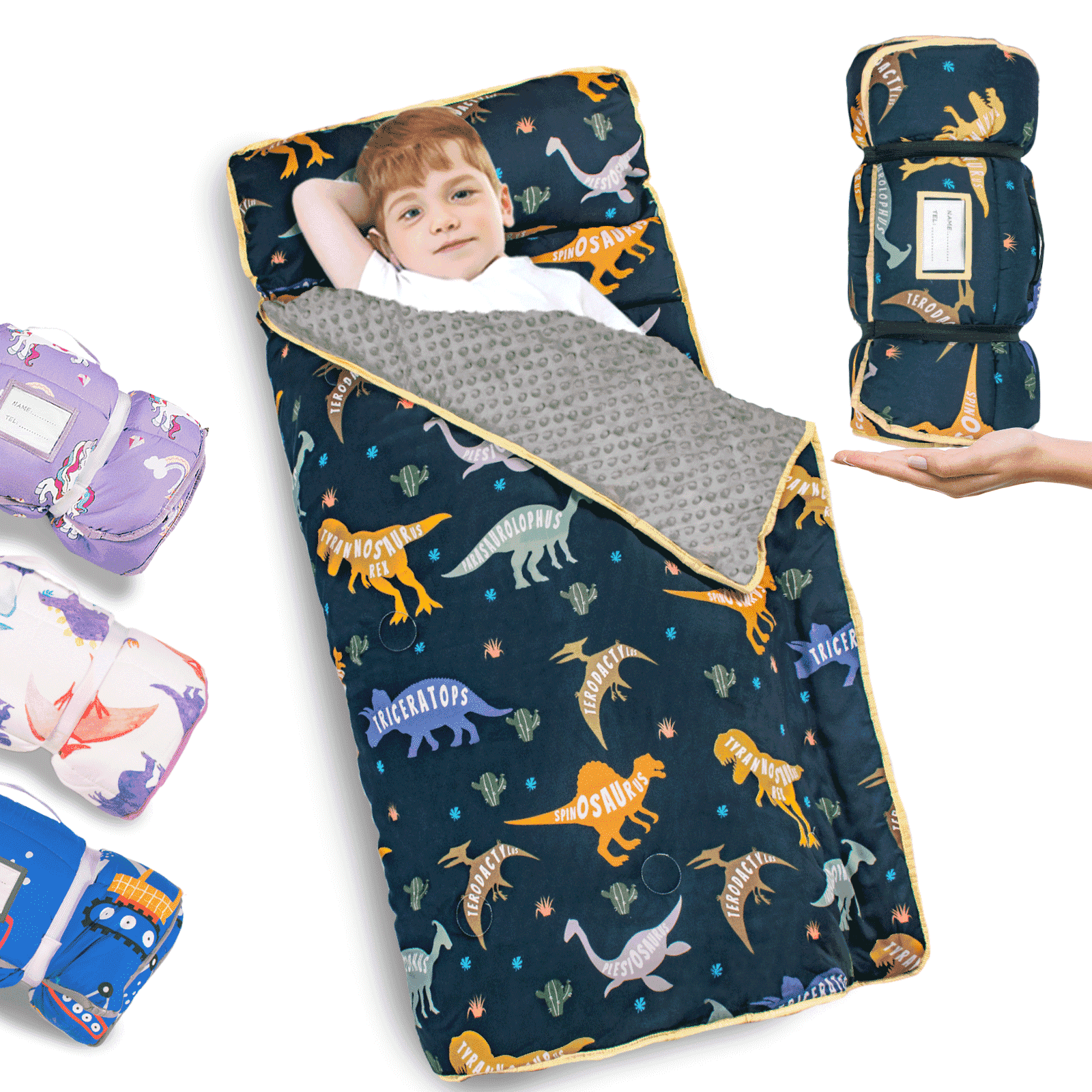 • 🎒 Portable Design: This kids sleeping bag has a sturdy handle and elastic strap for easy rolling and carrying. The transparent name tag ensures easy identification and prevents mix-ups.