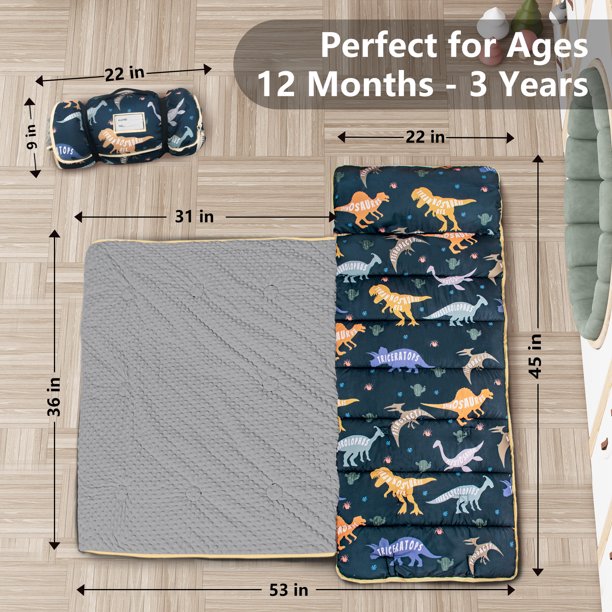 • 📏 Sized for Toddlers Aged 1–3: Designed for kids 24–36 inches tall, this nap mat fits younger toddlers perfectly—offering a cozy, secure spot for daytime rest.