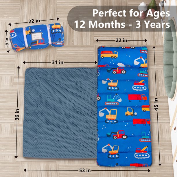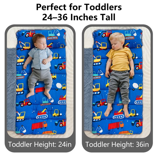 • 📏 Sized for Toddlers Aged 1–3: Designed for kids 24–36 inches tall, this nap mat fits younger toddlers perfectly—offering a cozy, secure spot for daytime rest.