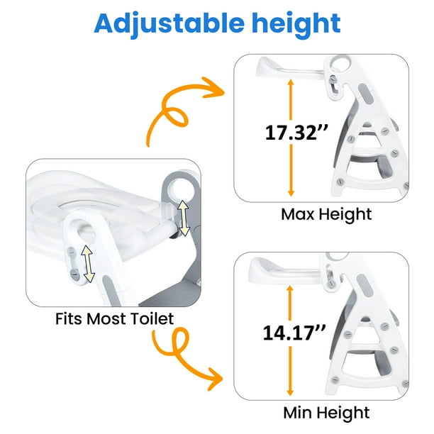 - 🚽 Adjustable Height & Fit: Pedal area is twice as large as normal pedal, easy for toddlers to step on. Adjustable step height and adjustable seat height suitable for most toilets