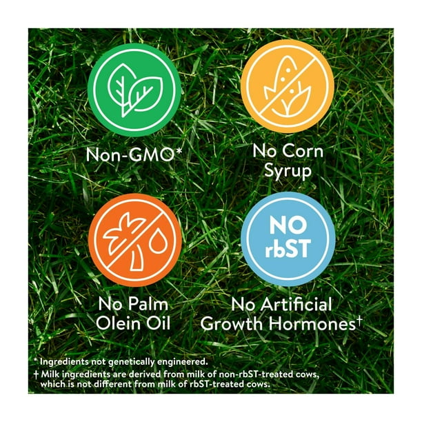 - No artificial growth hormones,‡ no palm olein oil, no corn syrup, and non-GMO§
