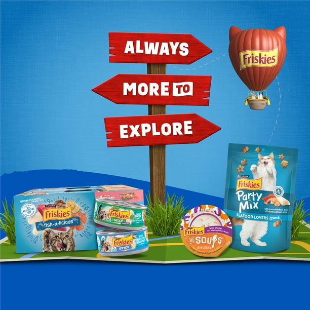 Put some me-wow in every meal you give your cat, with Purina Friskies Dry Cat Food Seafood Sensations With Salmon, Tuna, and Shrimp Flavors. With a wide variety of yummy wet and dry foods, Friskies cat food provides a world of taste adventures that feed your cat’s playfulness and curiosity. This Friskies cat food variety is no exception. It’s more than a meal, it’s a cat-tastic combination with an extra layer of irresistible yum that your cats won’t be able to resist. Seafood loving cats dive into this cat dry food mix of salmon, tuna and shrimp flavors. This cat food from Friskies brings the best to every bowl, making your cats’ eating dream come true. In addition, this cat kibble also satisfies your dreams, because each serving provides essential fatty acids for skin and coat health, vitamin A and taurine for vision support, and antioxidants for immune support for cats. You’ll love watching your cat happily enjoy this purrfect blend of 100 percent complete and balanced nutrition, with protein to help support healthy muscles, giving cats everything they need for climbing, jumping, and exploring. Make Purina Friskies Dry Cat Food Seafood Sensations With Salmon, Tuna, and Shrimp Flavors part of your cats’ mealtime, and they will meow for more. There’s always more to explore.
