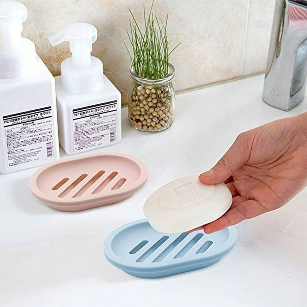 QiShi 2Pcs Soap Dish for Shower Soap Box, Soap Saver Case Holder with Drain for Bathroom Counter, Shower, Kitchen, Keep Soap Dry and Clean,Pink