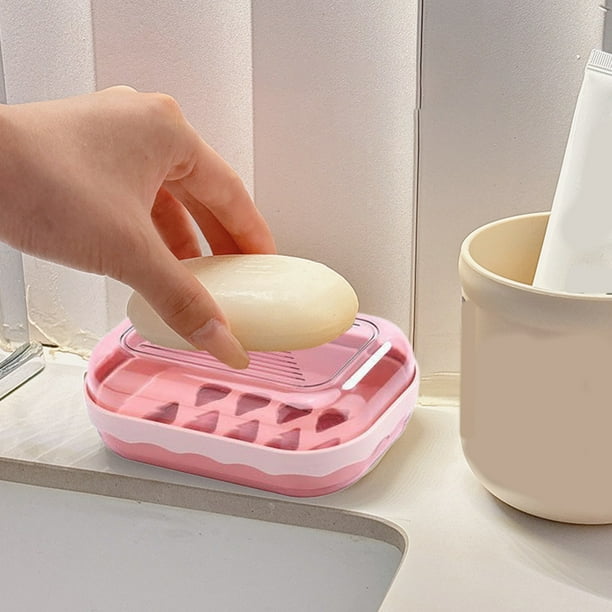Counter Top Soap Container Plastic Soap Dish with lid Bar Soap Portable Soap Case with Water Tray Soap Dish Easy to wash