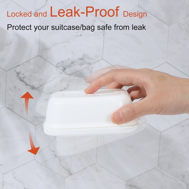 - Leak Proof: This case is very durable. It comes with a leak-proof design and can be locked.The tight lid prevents any possible leaking of the wet soap. The locked design will keep the case from opening unexpectedly. This soap case is handy for carrying your own soap, and keep suitcase clean.
